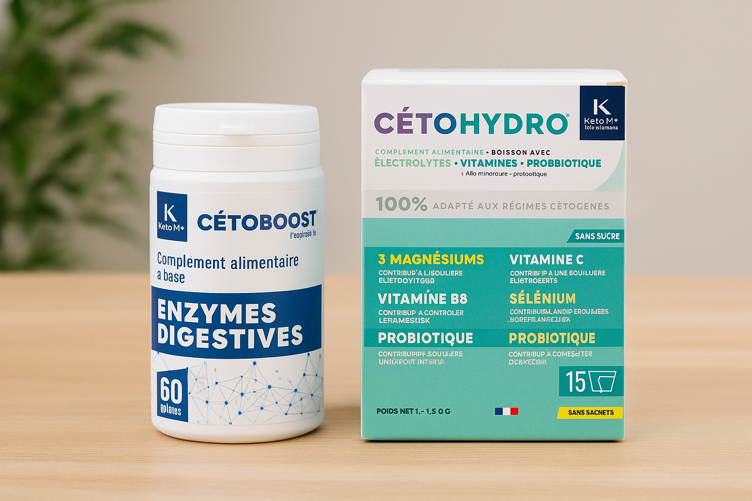 Verbessern Sie Ihre Verdauung und Ihre Vitalität mit dem CETOBOOST Enzyme + CETOHYDRO Pack. Ein ideales Duo für die Keto-Ernährung: bessere Assimilation, Elektrolytgleichgewicht und dauerhafte Energie im Alltag.
